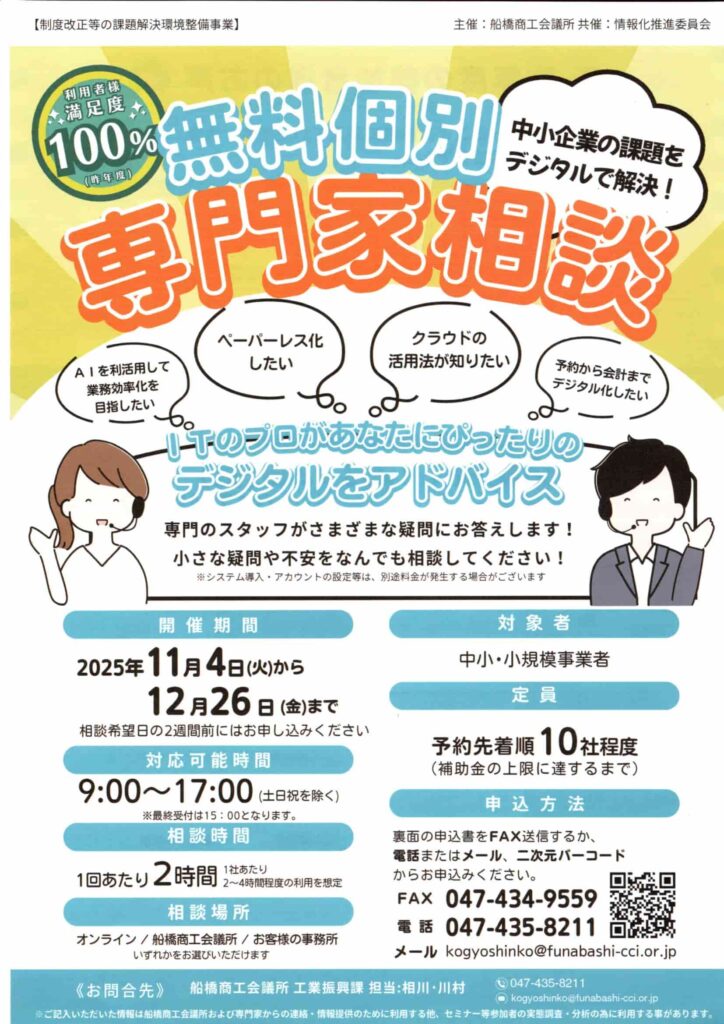 11月4日から始まる『無料個別専門家相談』の相談専門員として、弊社代表の長谷川和也が拝命しました。この事業は船橋商工会議所が主催し、専門家と経営者で構成される情報化推進委員会が共催しています。